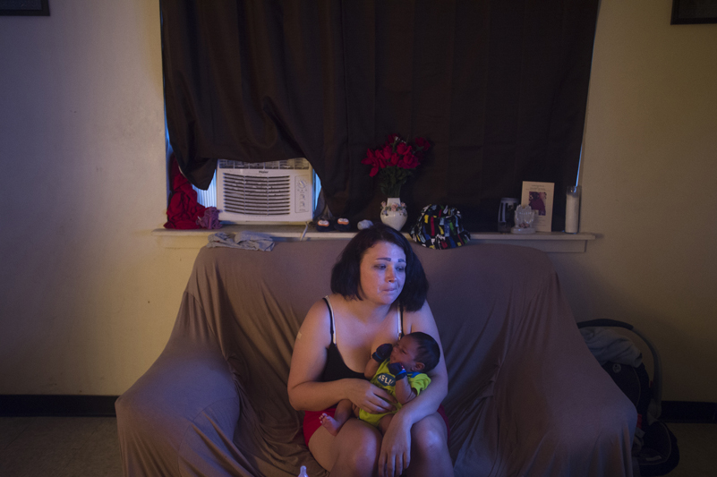 Sheresa Markham holds her one-month-old son, Kaden, on Wednesday, July 1, 2015, inside her family's apartment in Smiley Court, a public housing complex, in Montgomery, Ala. Sheresa and her husband, Mike, have been living in public housing with their children for the past two years.